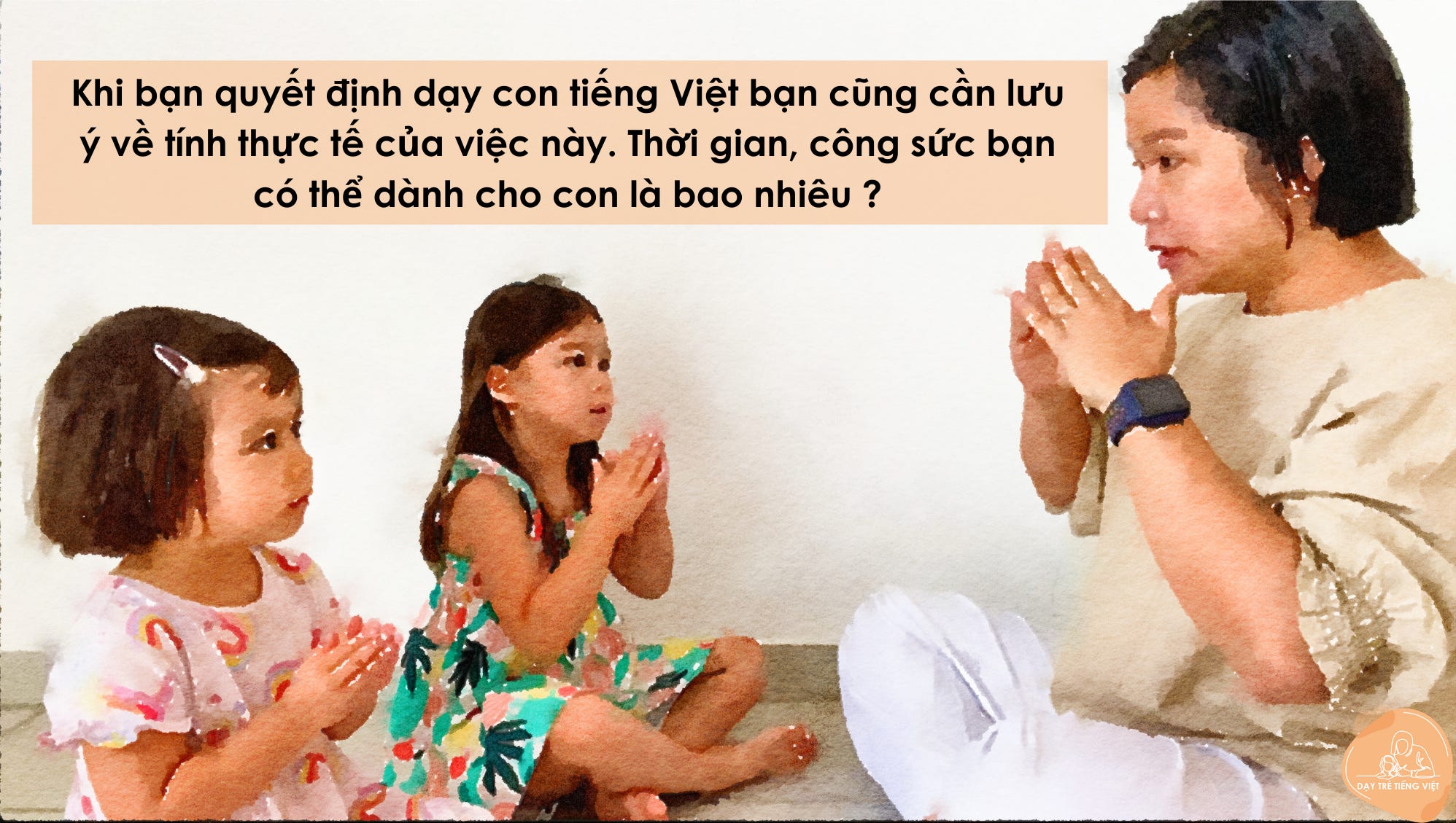 Cộng đồng người Việt ở nước ngoài là một cộng đồng lớn, trải dài khắp nơi trên thế giới. Nhiều gia đình sau khi đã ổn định cuộc sống ở xứ người họ có nhu cầu nói chuyện với con bằng tiếng Việt và dạy con về văn hoá Việt. Nhiều bậc cha mẹ thường nghĩ mình nói được tiếng Việt thì con sẽ dễ dàng nói và hiểu tiếng Việt. Suy nghĩ này không có gì là khó hiểu nếu bạn đang sống ở Việt Nam khi môi trường tiếp xúc của trẻ phần lớn là môi trường nói tiếng Việt. Tuy nhiên, việc này sẽ hoàn toàn khác khi cả gia đình của bạn sống ở môi trường mà tiếng Việt không phải là ngôn ngữ chính được giao tiếp và con bạn không đi học theo hệ thống giáo dục Việt Nam.